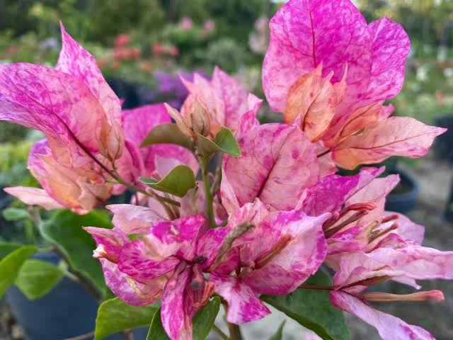 Arjuna is a popular variety of Bougainvillea, known for its vibrant pinkish-cream colored flowers with a unique texture, blooming throughout the season. It's a vigorous climbing shrub that thrives in full sun and requires moderate, well-drained soil conditions, making it suitable for gardens, terraces, and balconies.