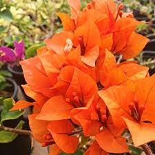 The Diamond Orange bougainvillea is a grafted, fast-growing, and low-maintenance flowering plant known for its vibrant, paper-like orange bracts that bloom in warm, sunny climates. It's a versatile plant that can be grown as a vine, shrub, or bonsai, and is well-suited for adding a splash of color to gardens, balconies, fences, and trellises.