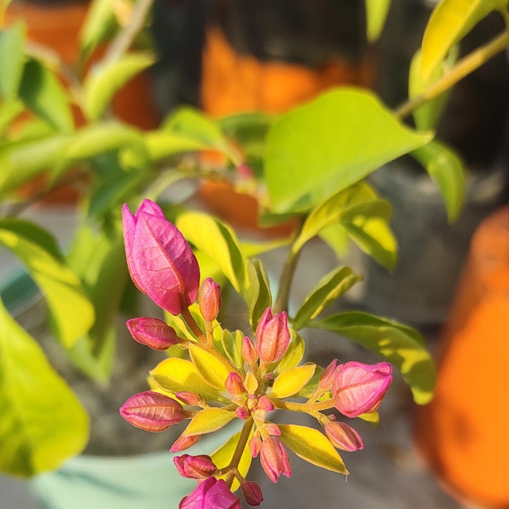 The "Moonlight Tanglong" bougainvillea is a captivating variety known for its ethereal, pale-colored bracts that glow with a translucent sheen, ranging from ivory to silvery-white with hints of blush or pastel lavender. It is part of the Tanglong series and is a repeated blooming, dwarf variety.